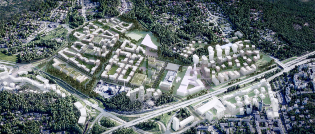 Kuva 2. Havainnekuva Länsiväylän varrelle lähivuosien aikana nousevasta Sundsbergin Yrityskylästä.