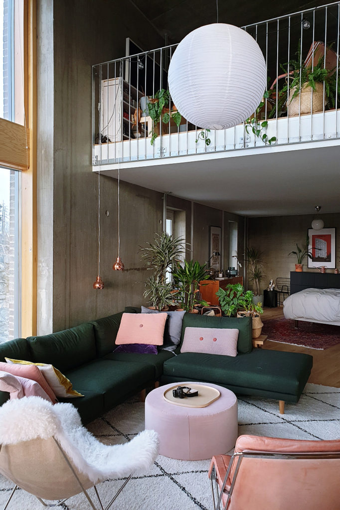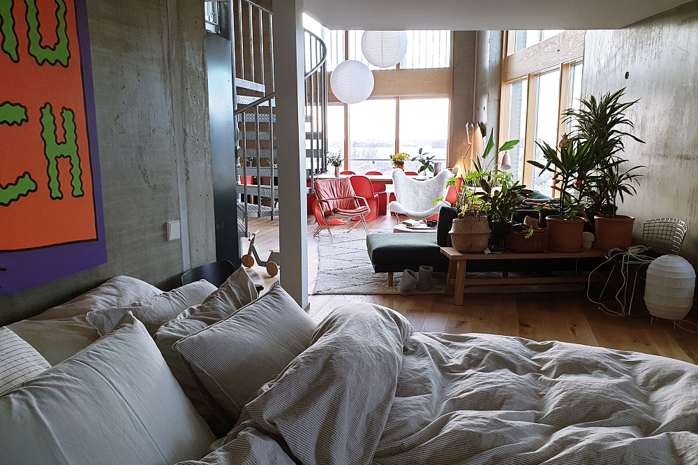 Sama muunneltavuus pätee täysin loftin tapauksessa. Kun käytössä on 131 neliöitä avaraa tilaa, niin eri funktioita voi rajailla ja muotoilla lähes loputtomasti omia tarpeita mukaillen. Jo nyt puolen vuoden asumisen aikana tämä oma loftini on muuttunut kotitoimistosta tv-sarjan kuvauslokaatioksi, toiminut sinkkuboksina, kahden aikuisen kotina ja perheasuntona, jumppasalina ja rauhoittumistilana. Kalusteet siirtyvät tarpeen tullen uusille paikoille, viimeksi työpöytä siirtyi parvelle ja makuuhuone parvelta alakertaan. Seuraavaksi lastenhuoneen toteutus muuttaa tarpeita niin pitkäksi ajaksi kuin tarvitsee. Asennetut seinät ja kiinteät kalusteet on nimittäin myös helppo purkaa taas uusien funktioiden tieltä.